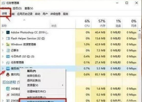 1.打开任务管理器,右键单击“正在处理”下的广告名称,然后选择“打开文件位置”;