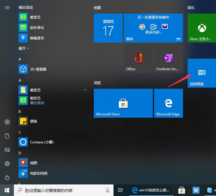 1、首先点击开始菜单,再点击控制面板进入。