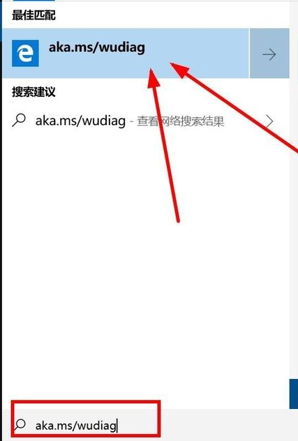 1、我们可以下载windows更新疑难解答工具,在小娜(Cortana)搜索栏中输入aka.ms/wudiag,直接获取最新的Windows 10的Windows更新诊断工具。