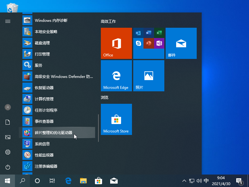 1、打开开始菜单,在 Windows 管理工具文件夹中找到碎片整理和优化驱动器并打开。