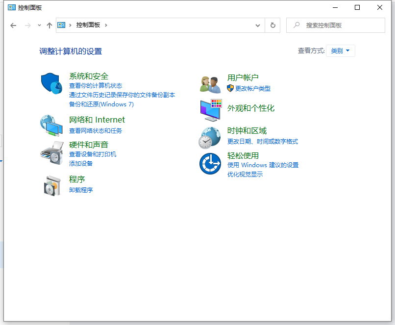 1、点击Win10系统桌面上的控制面板,然后选择控制面板里的查看类型。