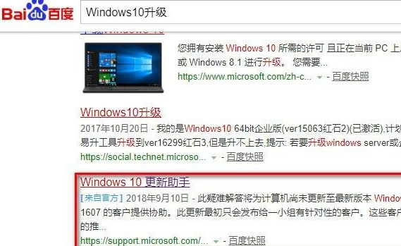 1、在百度搜索windows10更新助手,会搜出来很多,我们主要关注微软官网的就可以了。