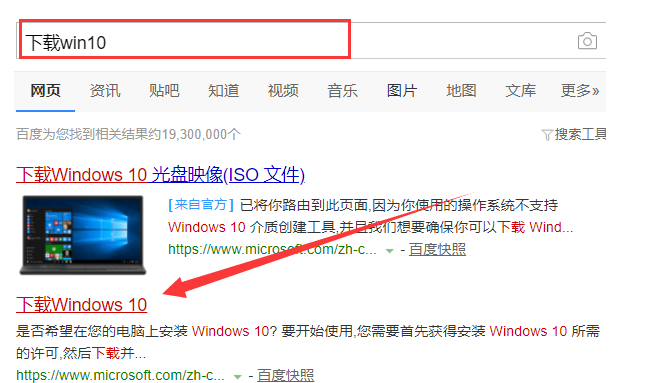 1、打开网页搜索引擎搜索“下载win10”点击下载win10链接进入官网。