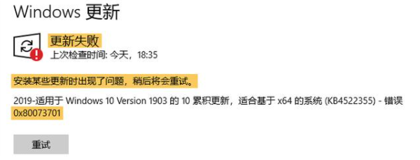 以上便是win10更新失败提示错误代码0x80073701的解决方法,希望能帮到各位。