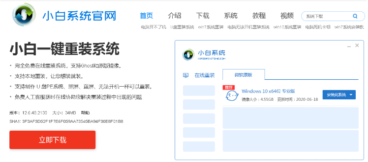 1.首先下载新版的小白一键重装系统,直接进入首页单击下载。