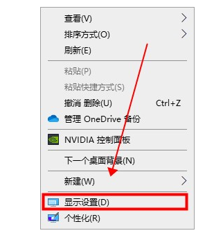 1.首先我们右键点击桌面空白处,在出现的选项卡中点击显示设置按钮。