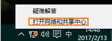 1.点击任务栏右下角的网络连接图标,右键选择打开网络和共享中心。
