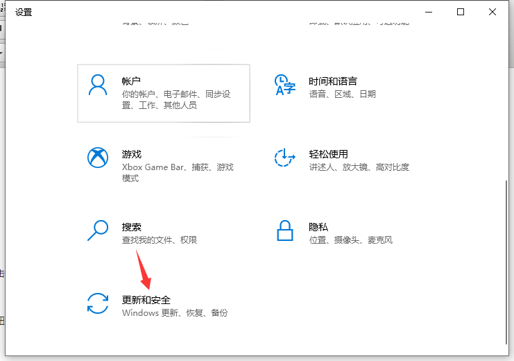 2.在这个页面当中找到一个叫更新与安全的功能选项,单击它。