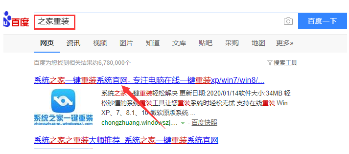 1.打开网页搜索“之家重装”下载系统之家一键重装系统工具。