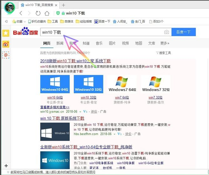 1.打开浏览器,在windows10上搜索下载windows10页面并点击打开,