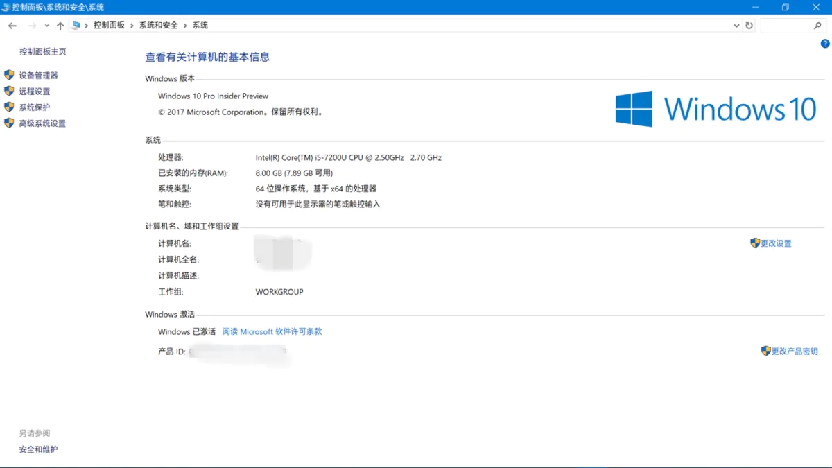 1.【控制面板】→【系统和安全】→【系统】