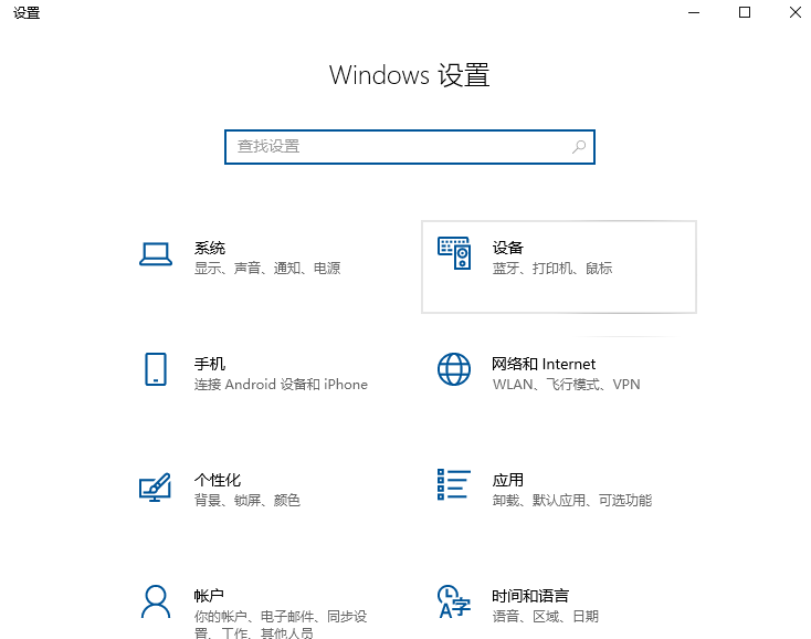 1、当我们进入win10系统后,点击左下角的“开始”菜单,选择“设置”选项。在进入的新页面中点击“设备”。