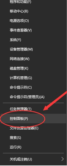 1、在Win10系统下,鼠标右键点击“开始”图标按钮,在弹出的菜单选项框中找到“控制面板”选项并点击它。