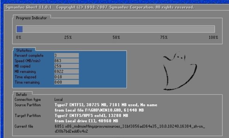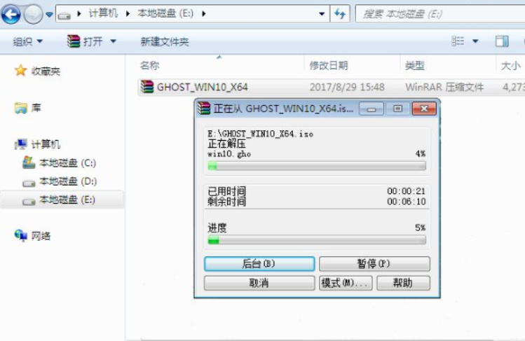 2.因为win10系统镜像的体积比较大,所有解压可能需要几分钟的时间,请耐心等待。