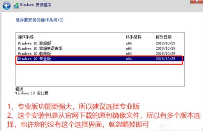13、推荐选择 专业版,由于演示的win10系统是从官网下载的原版系统,所以,有此选择,如果您的安装界面没有选择,就忽略这一项点击【下一步】按钮。