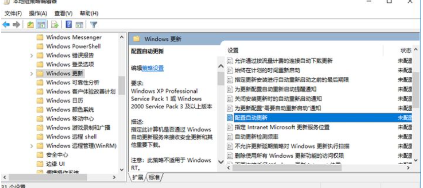 3、通过配置组策略来关闭Windows系统的自动更新。