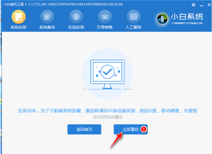 6、点击重启。