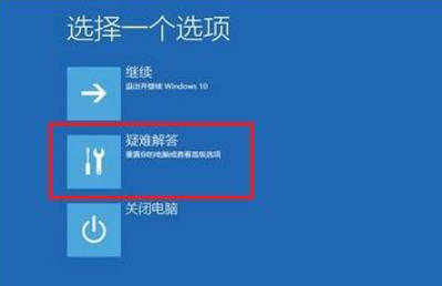 2、重启电脑后在开机时按“shift”键,点击“疑难解答”。