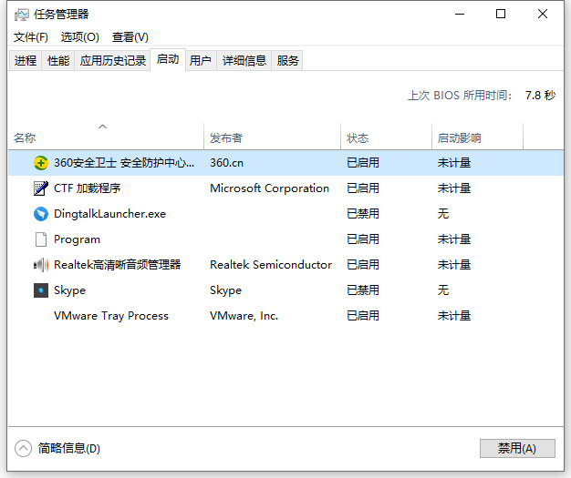 2、在任务管理器中,选择启动那栏,就可以看下显示的开机启动项,我们把不需要的开机启动项禁用即可。