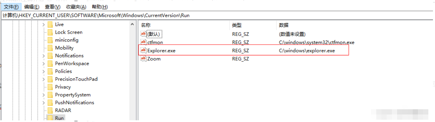 2、重新启动explorer进程或手动结束进程后,手动添加运行,无效;