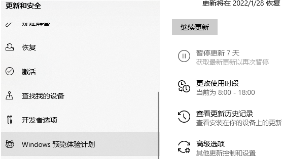 3、继续在左侧选择“windows预览体验计划”。