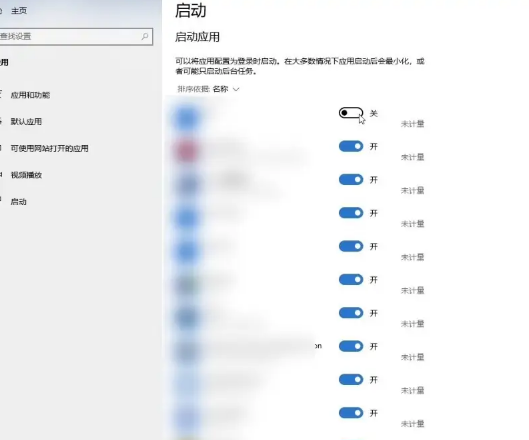 3、进入启动列表右侧滑块开启或者关闭即可设置启动项。