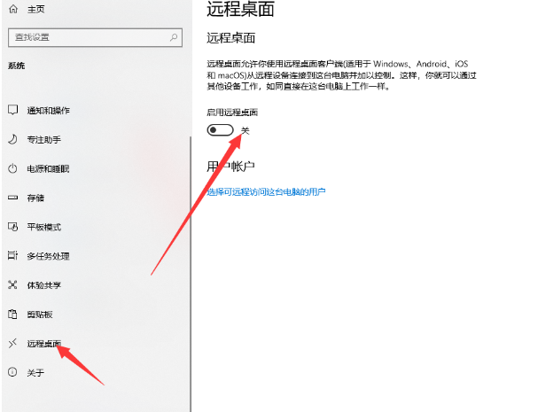 步骤二:单击左侧的远程桌面,然后启用远程桌面。