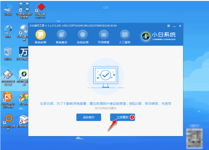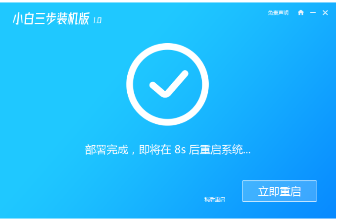 5、整个部署进度很快,完成直后会有十秒钟的倒计时来让我们选择立即重启或者稍后重启电脑。
