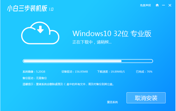3、小白三步装机版软件页面非常简单,耐心等待。