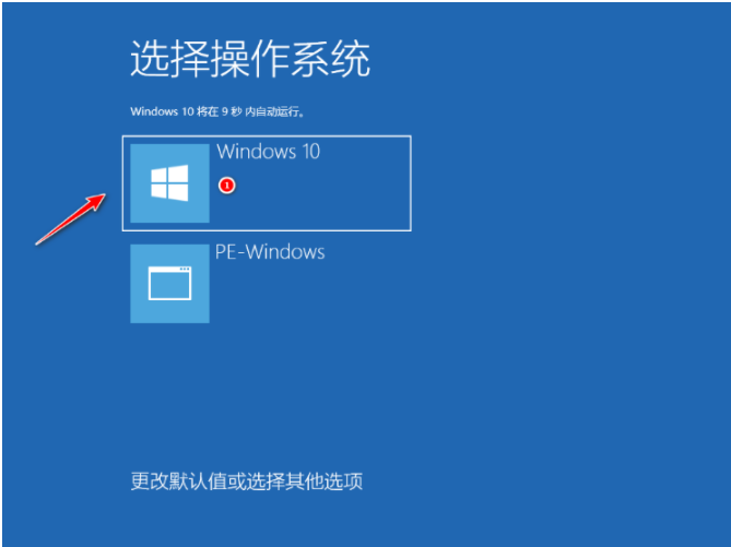 7、选择新安装好的windows10系统即可。