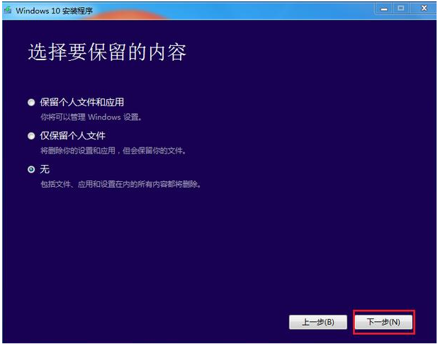 3、根据需要选择是否保留系统文件,进入到下一步。
