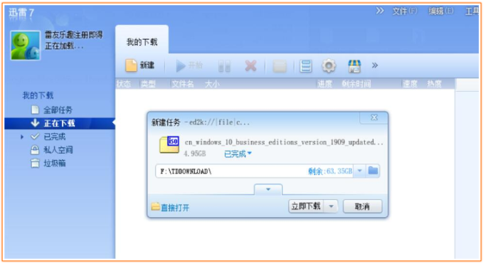 7、再打开迅雷软件下载win10专业版镜像,等待下载完成就可以了。