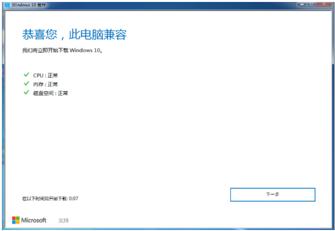 4、检测环境后,如果兼容此电脑的话,我们就点击下一步。