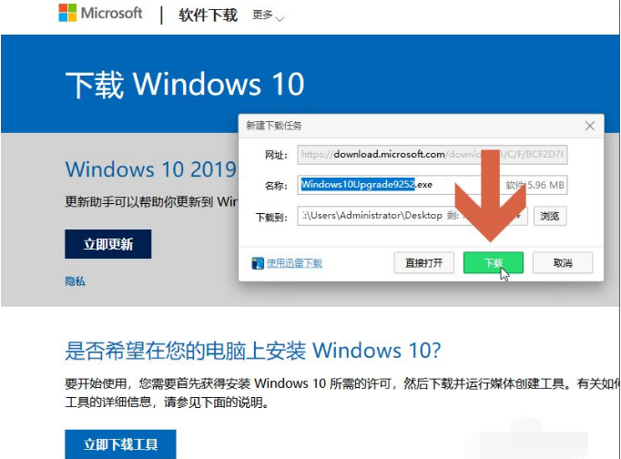 2、这时弹出下载任务,我们根据提示设置下载安装Windows10易升工具即可。
