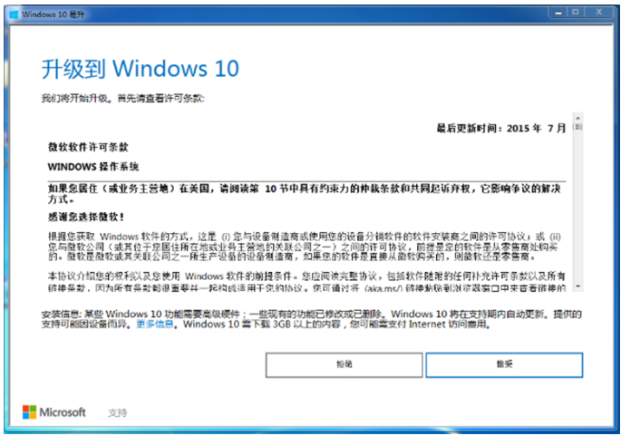 3、安装好后打开win10升级工具,接受许可条款。