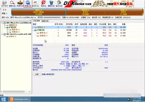 2、在弹出的分区工具界面上方菜单栏点击【快速分区】进行磁盘分区。