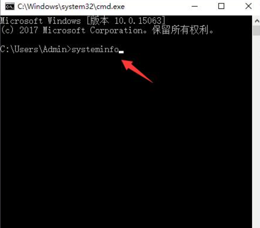 2、进入以下页面后输入systeminfo,回车。