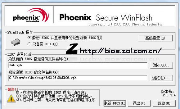 然后点确定就可以开始降级bios了,程序出现一些提示,点下一步就可以了。记住刷之前把所有能关的程序都关掉,还确保要接上电源,防止断电,USB外接设备和网线等都拔了..