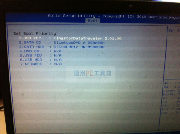 我们将用通用pe工具箱u盘启动盘制作工具制作好的u盘插入电脑的usb接口上,然后开机/重启电脑,再出现开机画面后,连续按F2 bios设置热键。这时候就能进入到bios系统了。
