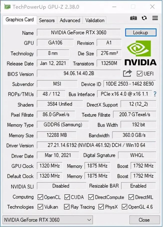 2021/09/07 3060显卡GPU—Z图3060显卡gpu-z软件