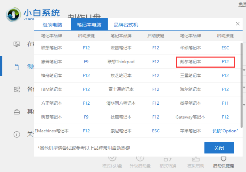 4、重启电脑在开机时不停地按快捷键,在调出来的界面选择USB的选项,戴尔电脑的快捷键就是F12。