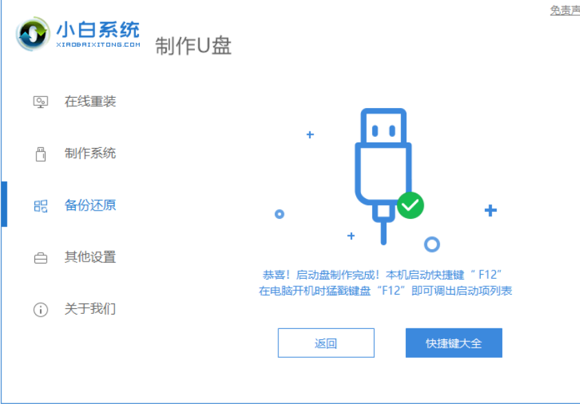 3、下载PE系统镜像文件,开始制作U盘启动盘,出现下面的界面说明制作成功了。