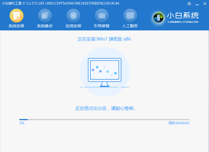 5、进入PE系统后会自动弹出PE装机工具,勾选下载的Windows系统,目标分区选择你的系统盘,点击安装系统。