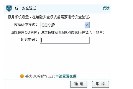 a)点击QQ令牌,弹出QQ令牌验证框:
