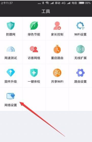 1.首先用管理员账户在你的手机中登录无线路由器,点击“网络设置”的图标。