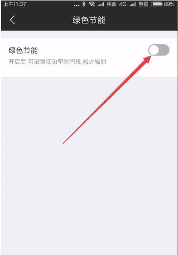 2.点击“绿色节能”的图标,在打开的绿色节能页面中,把绿色节能的开关设置为关闭即可。
