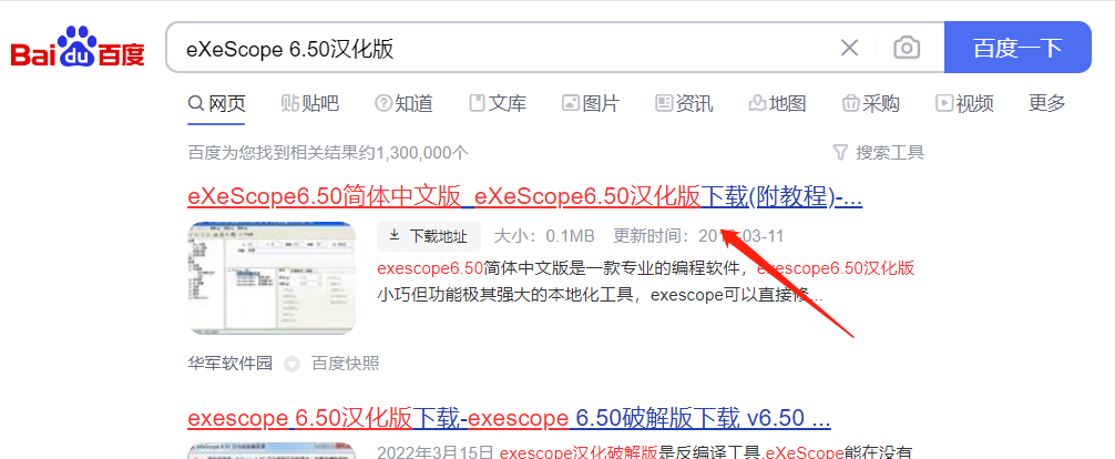 1.首先,到百度搜索下载eXeScope 6.50中文汉化版。