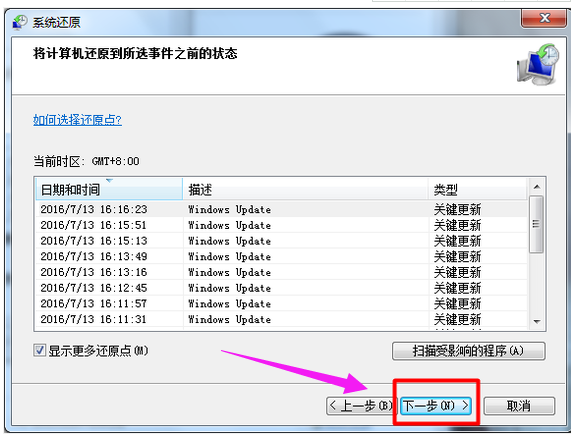 4、退回第三步界面,选择“系统还原”。