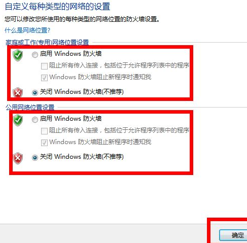 5、最后根据自己的需要选择关闭防火墙或者打开,然后在【确认即可】。