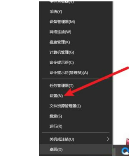 1、首先右键点击开始图标,然后点击菜单界面的“设置”选项;